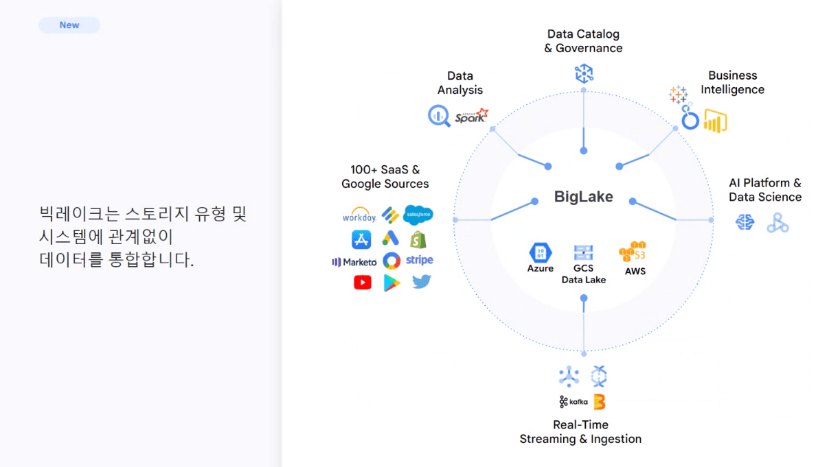 구글 클라우드는 데이터 레이크와 데이터 웨어하우스를 통합한 데이터 레이크 스토리지 엔진 빅레이크(BigLake)를 프리뷰 버전으로 발표했다. 서로 다른 데이터 레이크와 웨어하우스에서 데이터를 관리할 경우 사일로(silo)가 발생하기 쉽고, 특히 데이터 이동 시 리스크와 비용이 높아진다. 데이터의 제한을 없애는 빅레이크를 활용하면 기존의 스토리지 형식이나 시스템에 관계없이 데이터를 분석할 수 있다. 기업은 소스에서 데이터를 복제하거나 이동할 필요가 없어 비용 절감 및 효율성 향상의 이점을 누릴 수 있다.