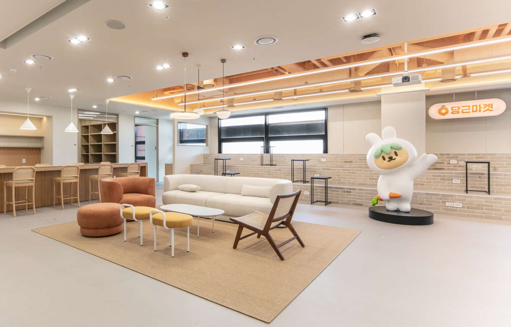새로운 사옥은 하이퍼로컬 서비스를 지향하는 당근마켓의 아이덴티티와 비전을 담아 설계했다. ‘우리 동네’를 테마로 사무실 곳곳에 친근하고 따뜻한 동네 느낌이 들도록 했다. 또 회의실 및 휴게 공간, 각 업무 룸으로 이어지는 복도에는 '은행나무길 마을회관', ‘둘레길 모퉁이집’, ‘오솔길 사진관’ 등 정감 있는 이름들을 부여했다.