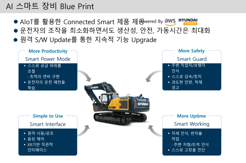▶ 아마존웹서비스(AWS)와 지난해 1월부터 AI 기반 스마트 건설장비 개발
