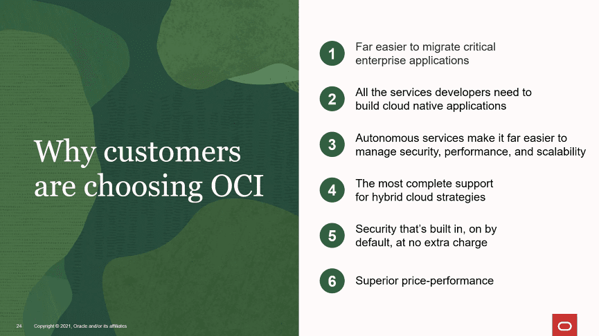 멀티클라우드가 대세가 되고 있는 상황에서 그는 고객들이 오라클을 선택하는 6가지 이유에 대해서 강조했다.