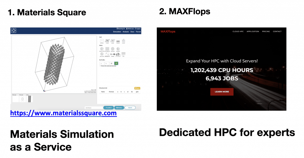 버추얼랩은 머터리얼스 스퀘어(Materials Square 이하 MatSQ)와 맥스플롭스(MAXFlops)를 제공한다.