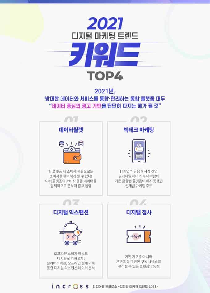 인크로스가 뽑은 2021 디지털 마케팅 키워드 Top4···데이터 월렛·빅테크 마케팅·디지털 익스팬션·디지털 집사