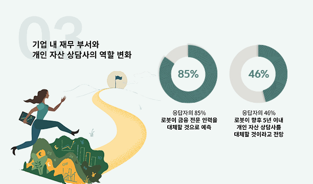 - 재무관리에 있어 과반수 이상의 사람들이 인간보다 로봇(AI)을 더 신뢰…복잡한 금융 문제 해결을 위해 개인 자산관리와 기업 재무 업무영역에서 AI의 역할 증가하는 추세
