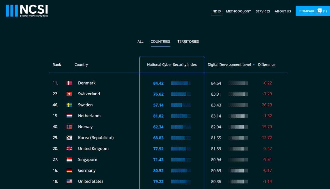 한국은 디지털 개발 수준 (Digital Development Level, DDL) 부문에서는81.55로 전세계 160여개 국가 중 6위를 차지했지만 사이버 보안 수치 (National Cyber Security Index, NCSI) 는 68.83으로 29위를 차지했다. 첨단 디지털 기술 및 기기 도입 수준을 나타내는 DDL 과 NCSI 의 차이는 약 13점으로 이는 한국인들이 디지털 기술이나 기기의 개발 및 도입 부문에서는 세계 최고의 수준이나 사이버 보안 인식부분에서는 세계 수준에 크게 못 미친다는 것을 여실히 보여준다.