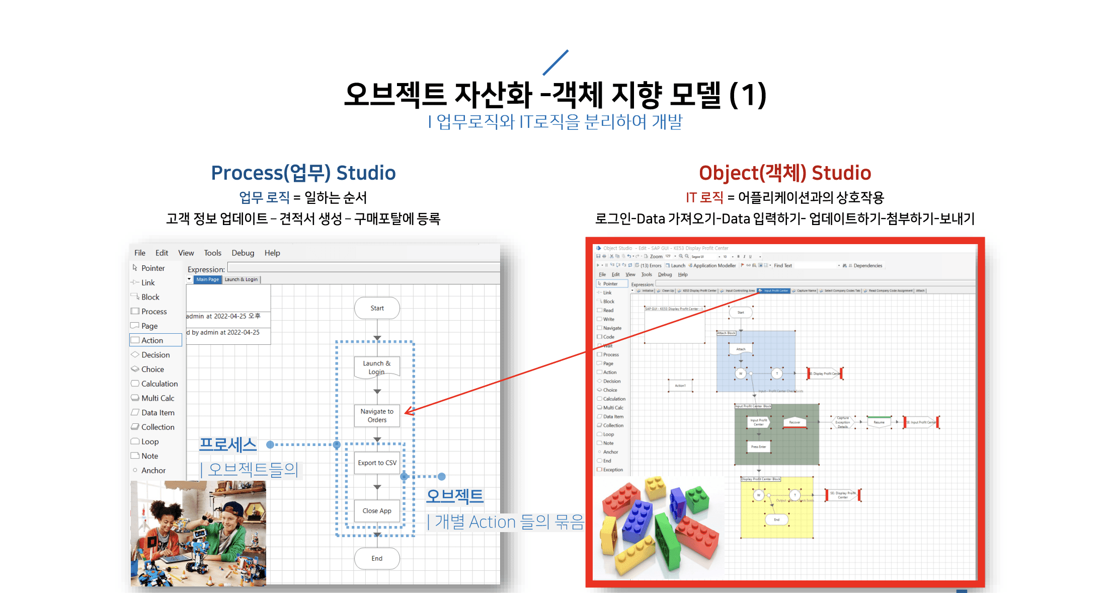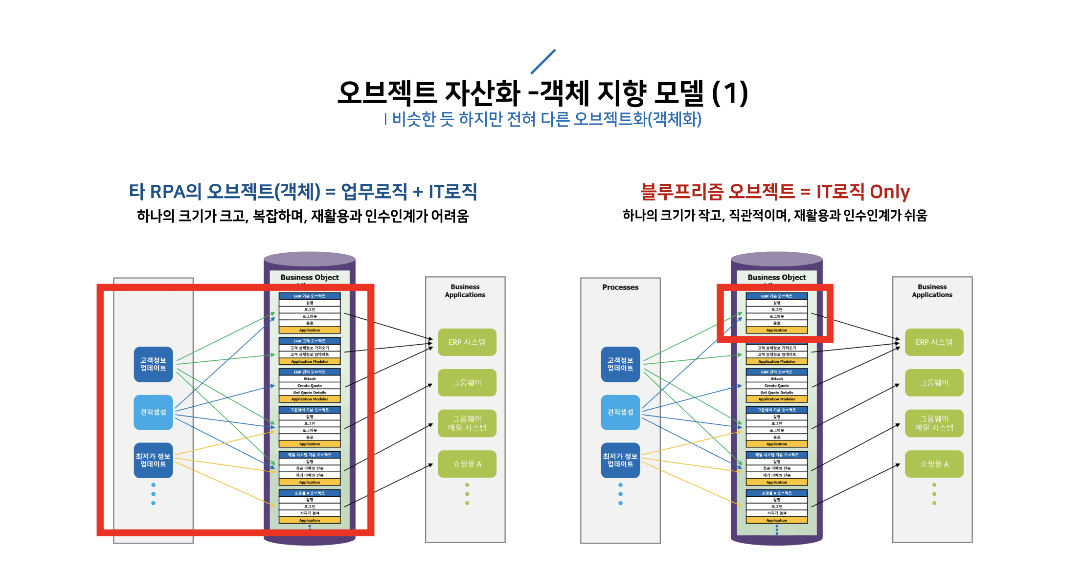 [테크수다 기자 도안구 eyeball@techsuda.com] "일의 순서를 그대로 두고 개별 업무 자동화에 집중한 것이 현재의 상황이라고 봅니다. 이는 개인의 행동을 자동화한 것 뿐입니다. 진정한 RPA(Robotic Process Automation, 로보틱 프로세스 자동화)는 프로세스를 재정의하고 종단간 프로세스를 자동화해야 합니다. 타사는 업무 로직과 IT 로직이 하나로 엮여 있는데 비해 우리는 프로세스와 오브젝트를 분리해 하나의 프로세스를 전체 업무에 적용하는데 수월합니다. RPA를 재정의해야 할 시기입니다. 업무 자동화만으로 혁신은 불가능합니다."
