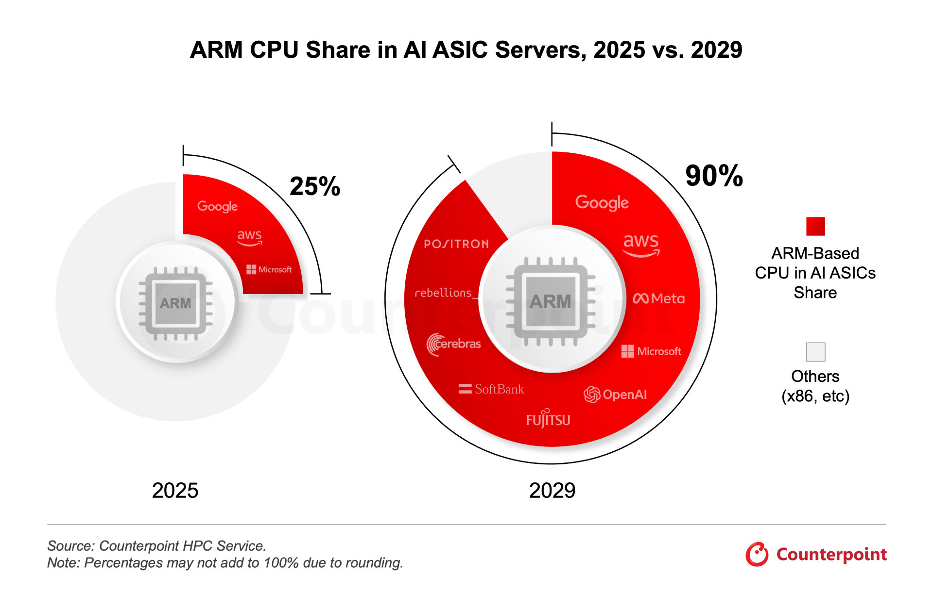 ARM 기반 CPU, 2029년 AI 서버 시장 점유율 90% 확대 전망…x86 중심 구도 흔들리나
