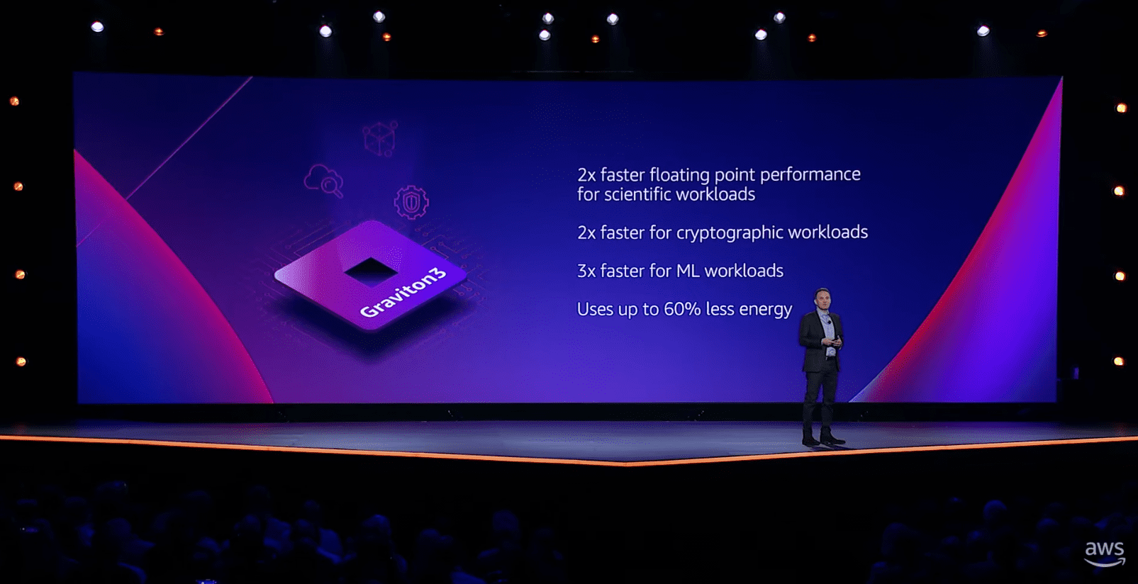 이번 행사에 AWS는 아마존 EC2에서 실행되는 고객 워크로드의 성능과 비용, 에너지 효율성 개선에 기여할 수 있도록 AWS 자체 설계 칩으로 구동되는 3개의 신규 아마존 EC2 인스턴스를 공개했다. ARM 기반 칩인 그래비톤2 버전의 후속 버전이 그래비톤3를 선보이면서 게이밍과 고성능컴퓨팅 영역의 애플리케이션까지 지원할 수 있도록 했다.