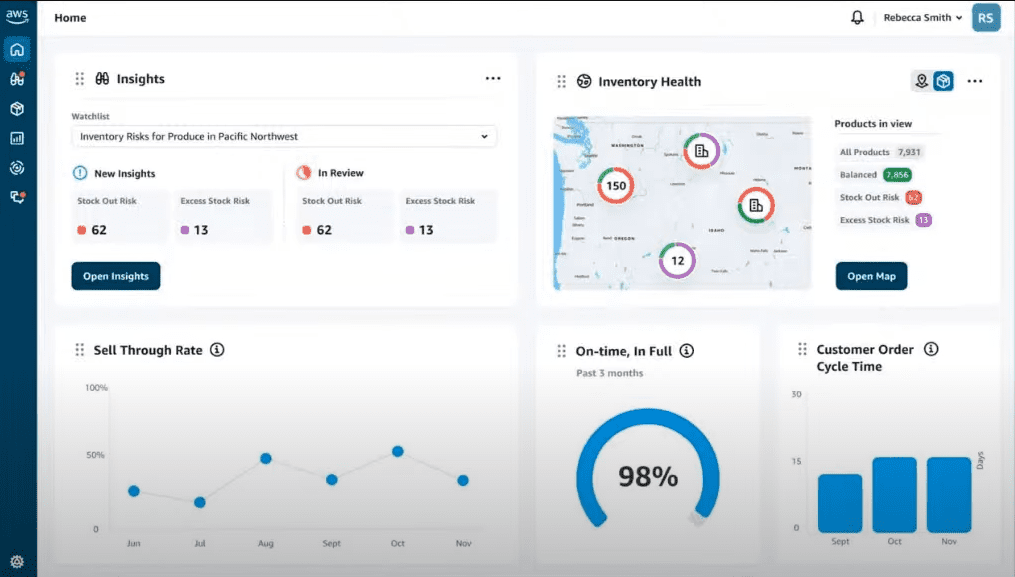 AWS 서플라이 체인을 통해 기업은 공급망 위험을 보다 정확하게 예측하고 재고 리밸런싱 작업을 신속하게 수행하여 비용을 절감하고 고객 기대를 충족할 수 있다.