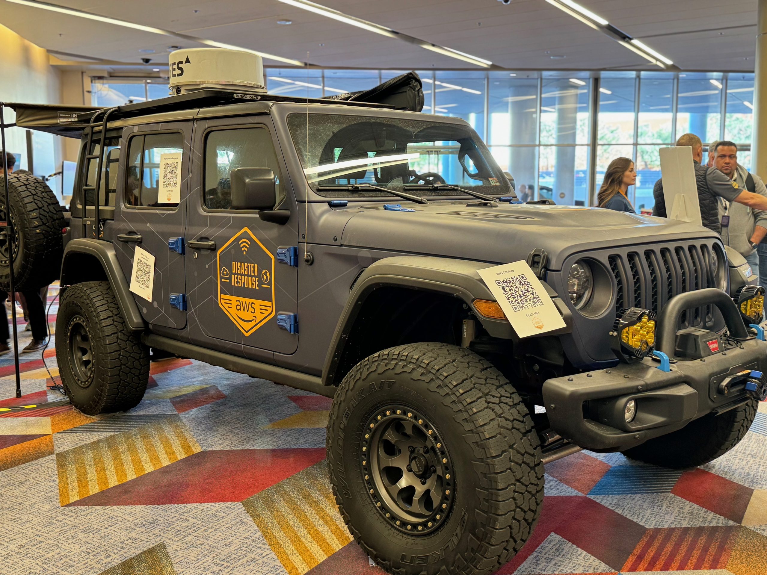 [테크수다 기자 도안구 eyeball@techsuda.com] 행사장 한편에는 멋진 지프(Jeep) 차량이 많은 참가자들의 눈길을 끌고 있었다. AWS 재해 대응 지프(AWS Disaster Response Jeep)로 불리는 이 차량은 아마존 웹 서비스(AWS)가 비영리 단체의 긴급 상황 대응을 돕는 차량이다.