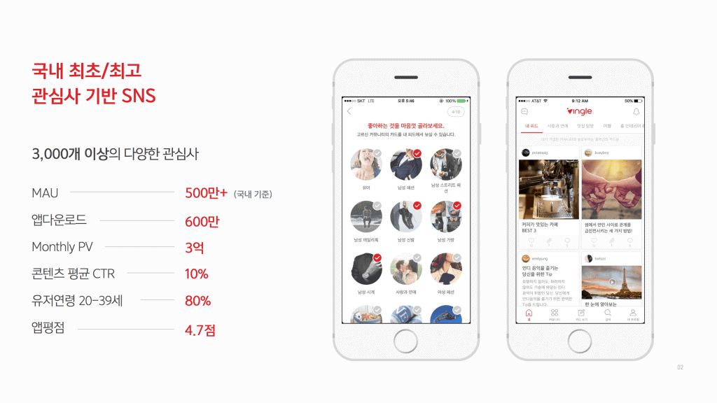 관심사 기반 소셜 미디어인 빙글은 2012년도 6월에 베타 서비스를 시작했다. 국내 기준으로 매월 500만 이상이 방문하고 있고, 전세계 26개국에서 매월 220만 명 이상의 순방문자가 찾아오는 글로벌 서비스로 성장했다.