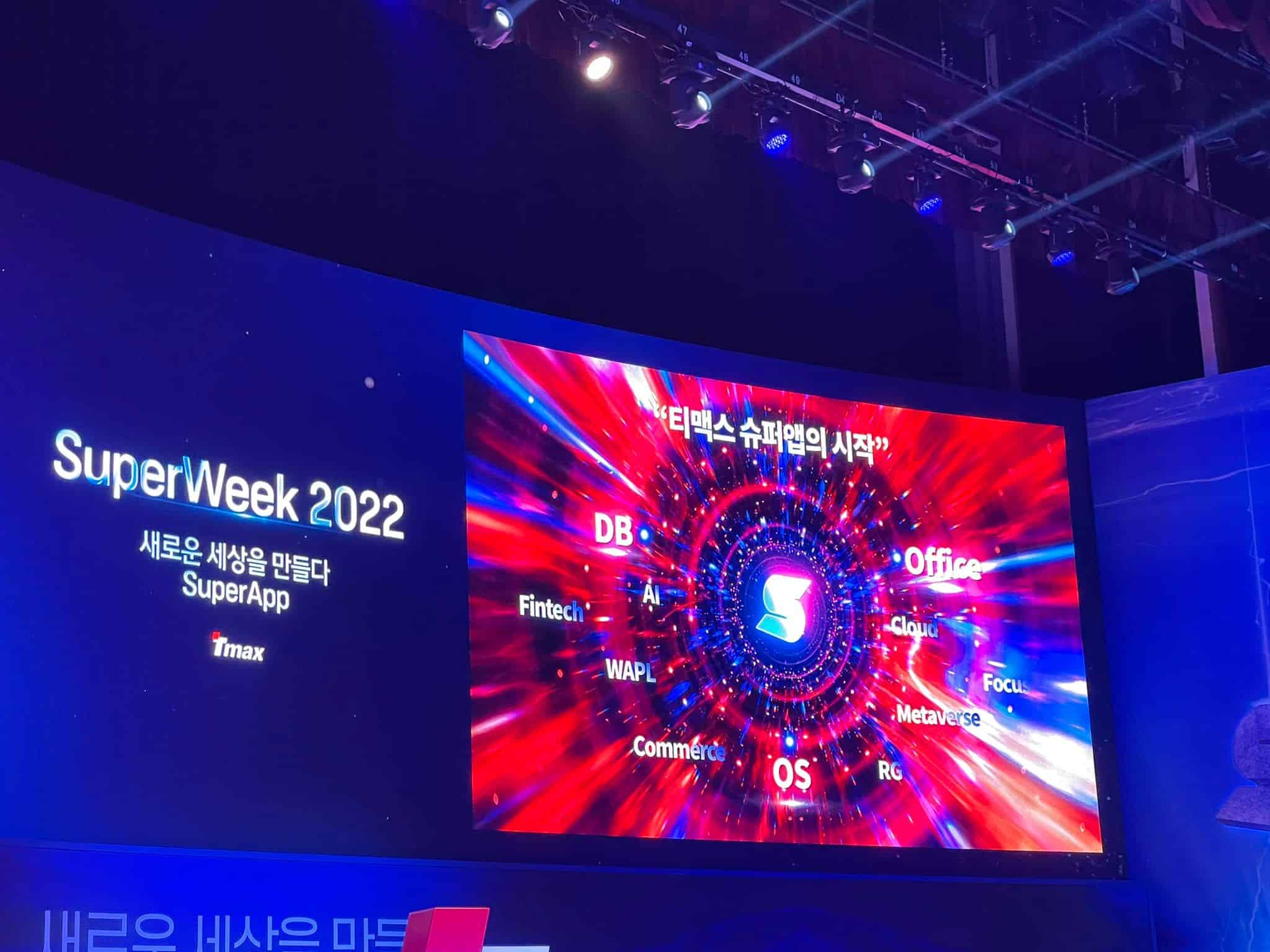 티맥스(티맥스티베로, 티맥스A&C)는 6일과 7일 양일간 서울 삼성동 코엑스에서 '슈퍼위크 2022(SuperWeek 2022)' 를 마련하고 개인, 기업, 국가의 모든 수요를 아우르는 토털 케어 플랫폼 '슈퍼앱(SuperApp)'을 발표하고, 이로 인해 혁신적으로 진일보할 미래 일상과 비즈니스 모습을 함께 소개했다.