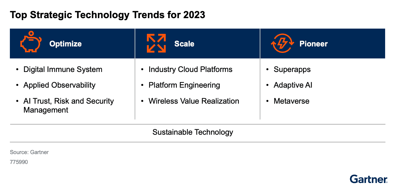 가트너가 제시하는 2023년 주요 전략 기술 트렌드는 다음과 같다: