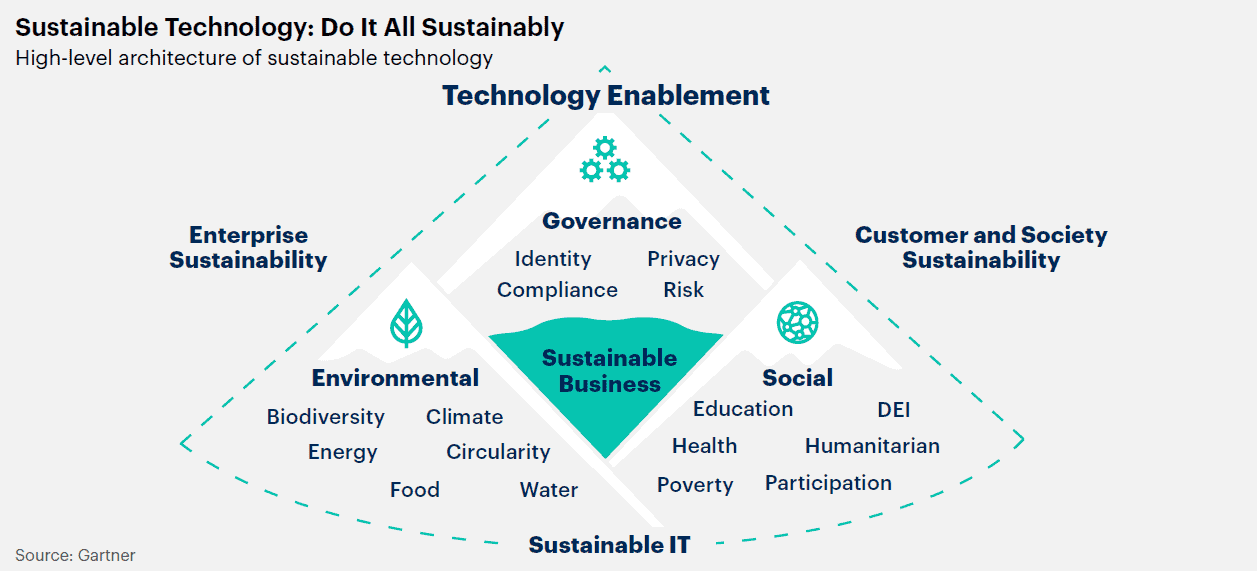 지속 가능성은 2023년의 모든 전략 기술 트렌드를 관통하는 주제다. 최근 가트너의 설문조사에서 CEO들은 환경 및 사회적 변화를 오늘날의 투자자들에게 수익과 매출 다음으로 중요한 세 번째 우선순위로 꼽았다. 이는 경영진이 지속 가능성 목표를 달성하기 위해 ESG 요구사항을 충족하도록 설계된 혁신적인 솔루션에 더 많이 투자해야 함을 의미한다. 이를 위해 조직은 새로운 지속 가능한 기술 프레임워크가 필요하다. 이 프레임워크는 IT 서비스의 에너지 및 자원 효율성을 높이고, 추적성, 분석, 재생 에너지 및 AI와 같은 기술들을 통해 기업의 지속 가능성을 실현하며, 고객이 지속 가능성 목표를 달성할 수 있도록 IT 솔루션을 배치한다.