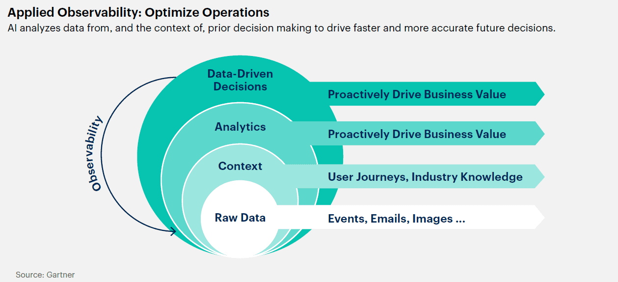 카라모지스는 “관찰 가능성 응용을 통해 조직은 데이터 아티팩트를 활용하여 경쟁 우위를 확보할 수 있다”며, “이는 의도가 아닌 검증된 이해관계자 행동에 기반하여 신속한 조치를 취하고 적절한 시점에 적절한 데이터 사용의 전략적 중요성을 높이기 때문에 강력한 기능이다. 전략적으로 계획되고 성공적으로 실행될 경우, 관찰 가능성 응용은 데이터 기반 의사 결정의 가장 강력한 원천이 될 것”이라고 설명했다.