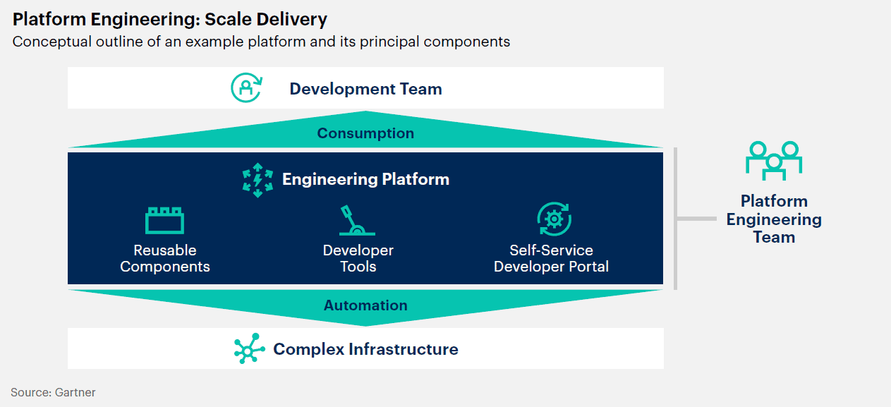 가트너는 소프트웨어 엔지니어링 기업의 80%가 2026년까지 플랫폼 팀을 구축할 것이며, 이 중 75%는 개발자 셀프 서비스 포털을 포함할 것으로 예측한다.