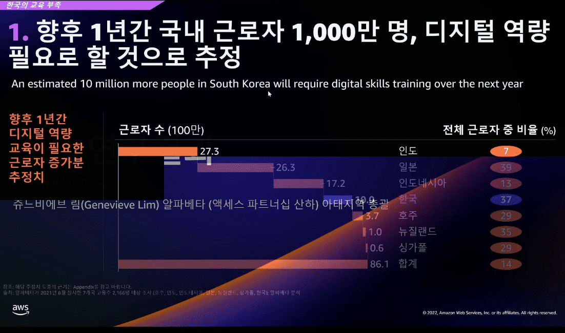 "한국 디지털 역량 교육 필요자 1년내 1천만명"···AWS, 인재 육성에 총력 지원