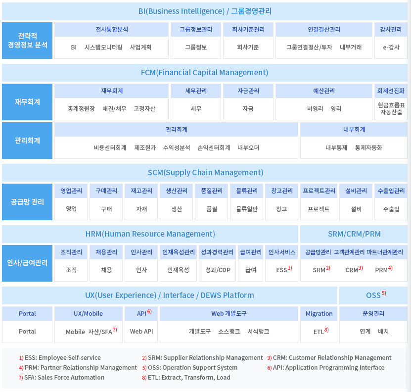대기업에서 요구하는 실시간 경영(Real Time Enterprise)과 업무프로세스 자동화(RPA)를 실현하고 기업 내 축적된 빅데이터 관리까지 가능토록 업그레이드했다.