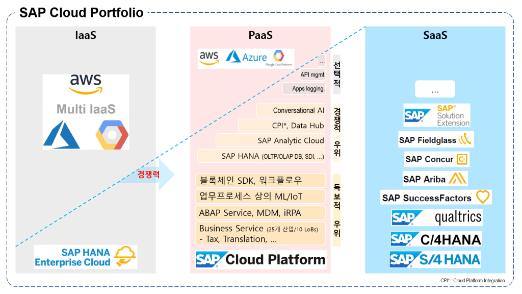 전사적자원관리(ERP)와 고객관계관리(CRM), 공급망관리(SCM) 분야 강력한 시장 지배력을 가졌던 SAP가 자사가 보유한 제품들을 꾸준히 서비스 형태로 탈바꿈시키면서 동시에 비용 관리, 경험관리, 인사관리, 구매관리 분야의 전문 SaaS 기업들을 인수합병하며 새로운 시대 변화에 적극 대응하고 있다.