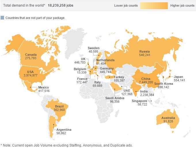 클라우드 컴퓨팅 전문인력을 뽑는 나라와 구인수