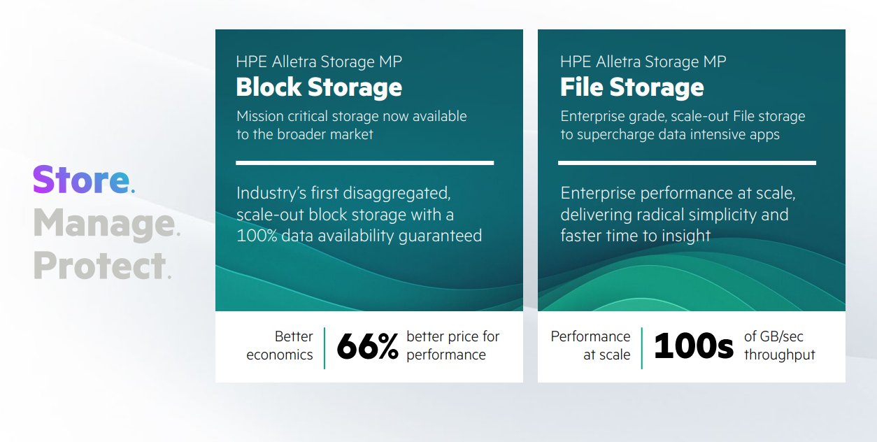신규 파일 스토리지는 데이터 집약적인 워크로드를 다룰 수 있도록 엔터프라이즈급의 스케일아웃 성능을 제공하며 HPE 알레트라 MP기반 블록 서비스는 미드레인지 대상 미션 크리티컬 스토리지를 제공하고 있다.