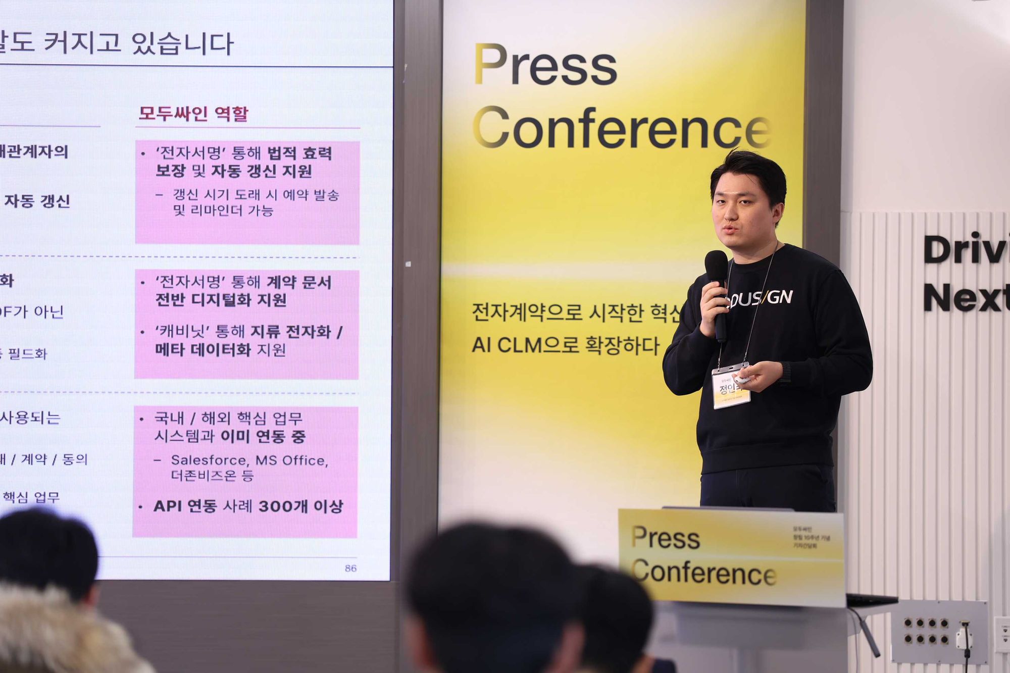 국내 전자계약 시장 1위 모두싸인이 창립 10주년을 맞아 “전자서명을 넘어 AI 기반 계약운영으로 확장하겠다”는 전략을 공식화했다. 10일 서울 강남의 디캠프 선릉 이벤트홀에서 열린 기자간담회에서 회사는 차세대 CLM 비전과 신제품 ‘모두싸인 캐비닛(Cabinet)’을 공개하며 새로운 성장 축을 제시했다.
