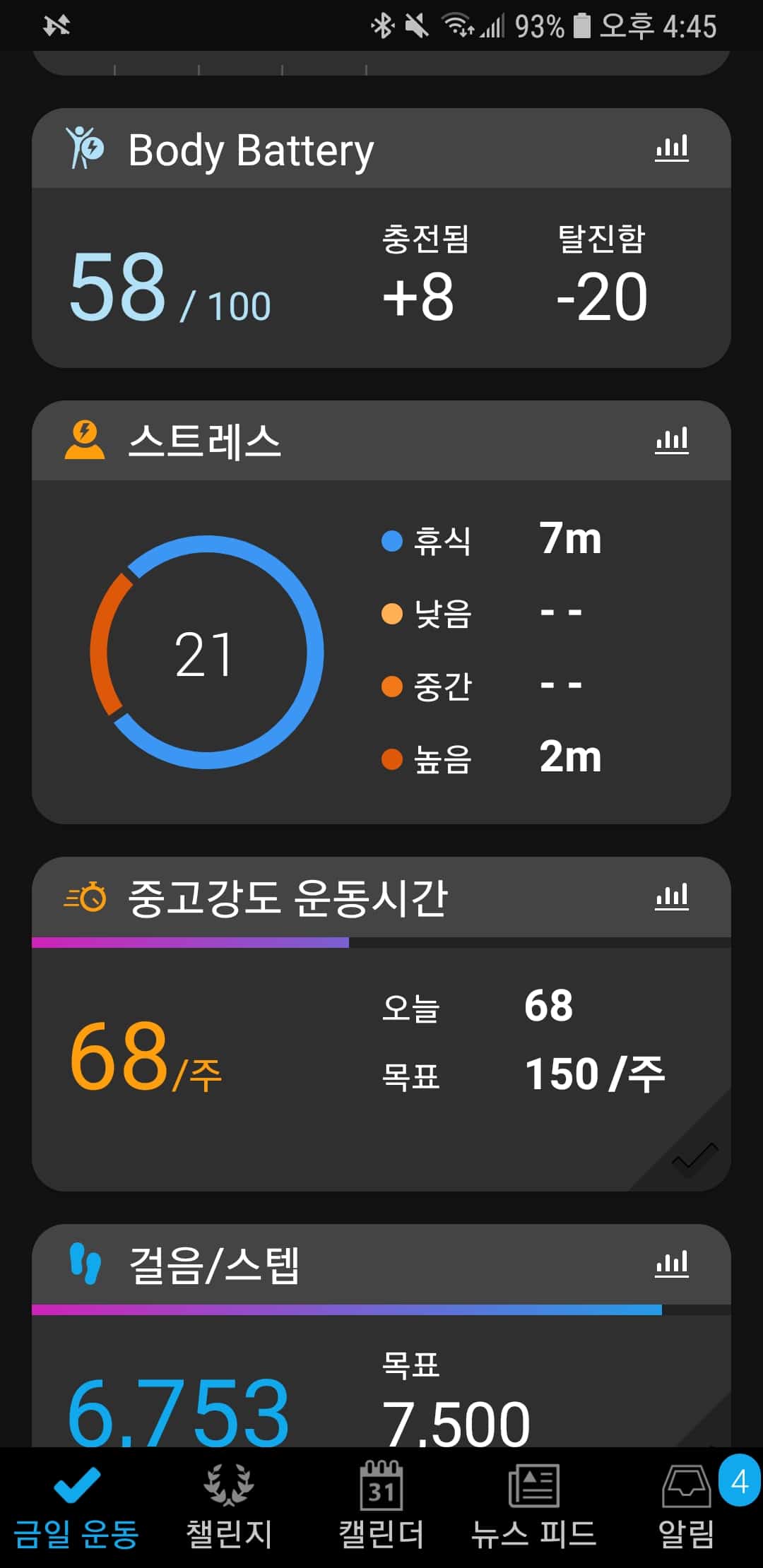1주일간 한몸이 되어 사용해 보았다. 기존 스마트워치와 동일한 기능을 제공하며 가민 엣지등을 사용하고 있어 별다른 불편함은 없다. 기존 스마트위치의 터치기능, 워치패이스 처럼 아기자기한 맛은 적지만 전용앱을 통해 변경은 가능하다.