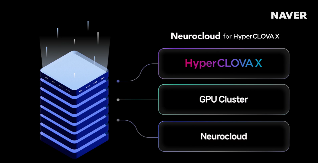 곽 CTO는 강력한 보안과 기업 자체적 생성형 AI 구축을 원하는 기업 고객을 위한 완전 관리형 하이브리드 클라우드 서비스인 ‘Neurocloud for HyperCLOVA X(이하 뉴로클라우드)'를 소개했다. 해당 상품은 하이브리드 클라우드 솔루션인 뉴로클라우드를 고객사의 데이터센터 내부에 직접 설치하고 그 위에 GPU 클러스터를 결합, HyperCLOVA X 모델과 학습, 운영도구들을 패키지 형태로 제공하는 기업 전용 서비스다.