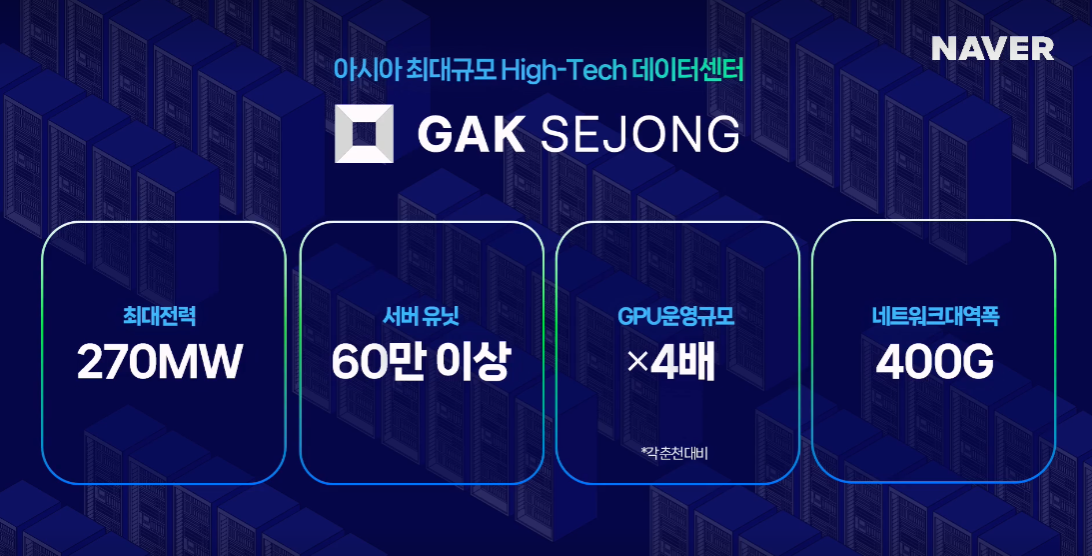 무엇보다도 이러한 모든 솔루션과 서비스들은 올해 말 선보일 아시아 최대규모의 하이테크 데이터센터인 '각 세종'을 기반으로 구동된다. 각 세종은 초대규모 AI가 성장하고, 대한민국의 AI 주권을 지켜 나가는 성장동력이 될 예정으로, 네이버클라우드는 AI가 탑재된 B2B 서비스, 안정적인 클라우드 플랫폼, 하이퍼스케일 AI 데이터센터까지 풀스택으로 갖추며 기업의 AI 기반 혁신을 적극 지원하는 독보적 기업으로 자리매김하게 됐다.
