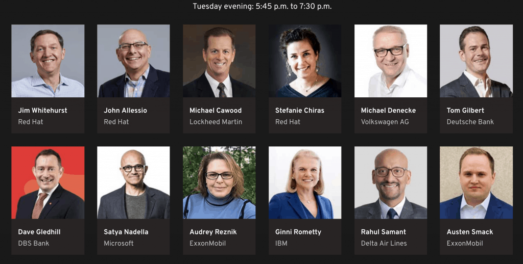 이번 행사에는 지미 로메티 IBM 회장도 키노츠에 함께합니다. IBM 회장의 참석은 너무나 당연해 보입니다만 또 다른 특별 손님이 있습니다. 바로 사티아 나델라 마이크로소프트 CEO입니다. 리눅스를 사랑한다고 말하고 있는, 마이크로소프트 부활의 선봉장이자 대표주자인 그가 드디어 레드햇 서밋 행사 기조 연설에 참여합니다.