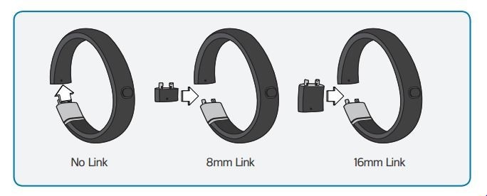 퓨얼밴드를 손목에 차기 위해서는 손목두께에 알맞게 크기를 조정해야 된다. 여분의 밴드 연장링크가 있어 대부분의 성인 손목에는 모두 맞을 듯 하다. 기본 제공된 익스텐션으로 구멍에 핀을 쿡 눌러주면 쉽게 분리된다.