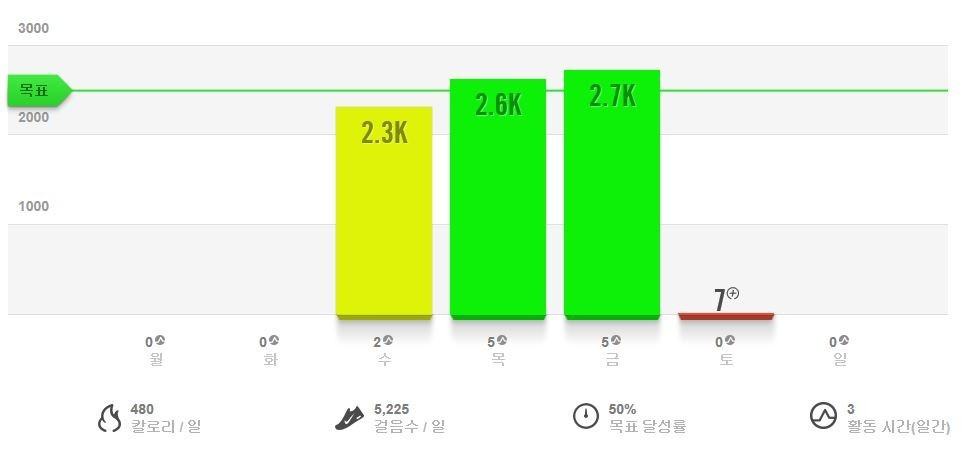 운동시작 3일째 데이터들이다. 매일 목표한 운동량이 증가하는 것을 볼 수 있다.