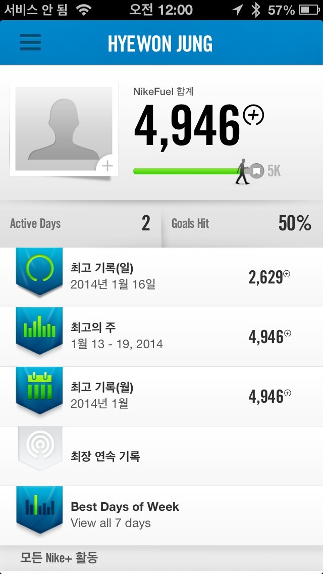 나이키플러스 가입시 입력한 생년월일, 키, 몸무게등의 신체정보를 입력하면 해당 데이터를 기초로 정확한 칼로리 소모량을 계산해서 보여준다.