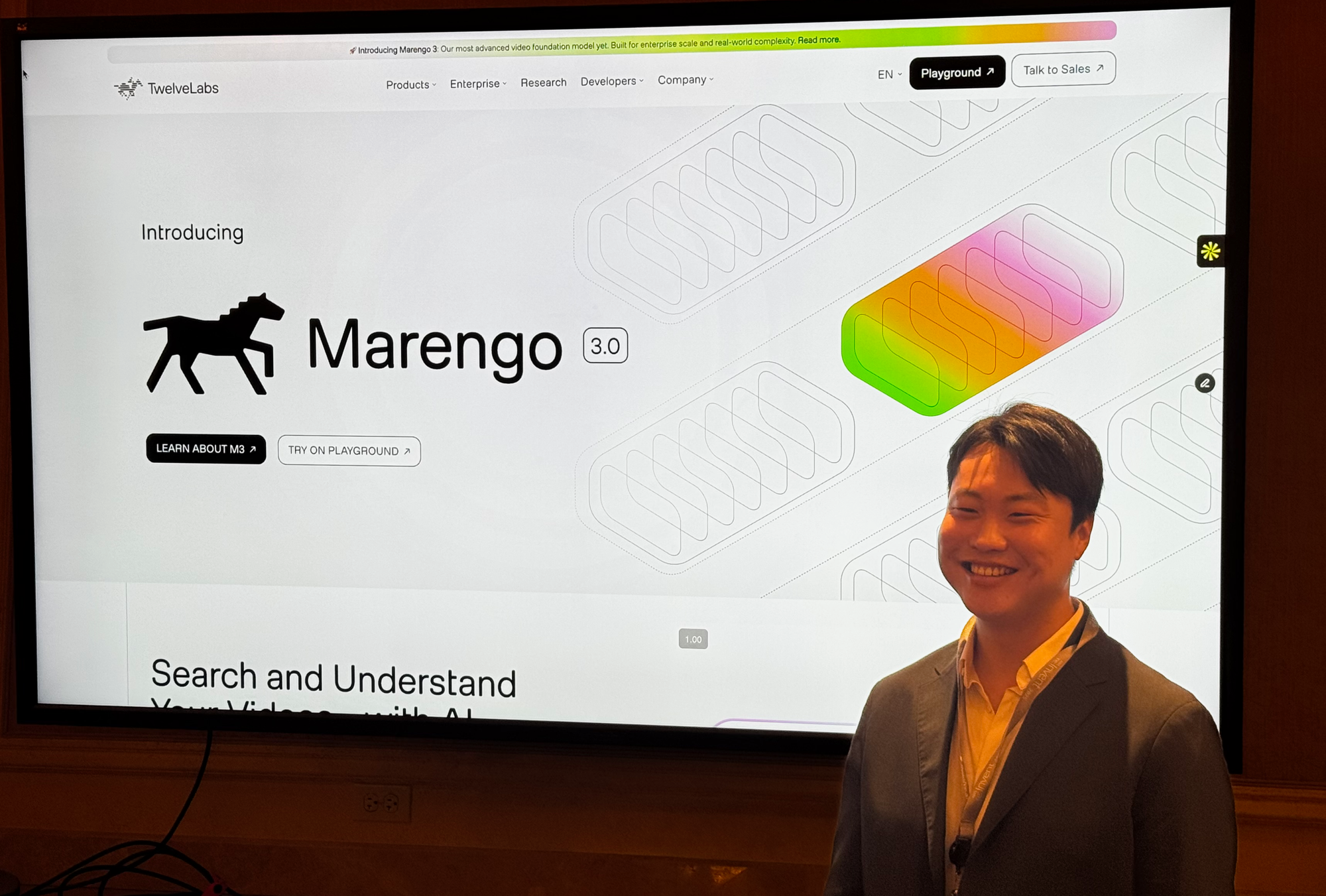 이재성 트웰브랩스 CEO는 2025년 12월 1일(월요일, 현지시간), AWS 리인벤트(re:Invent) 현장에서 트웰브랩스가 공개한 차세대 영상 이해 모델 ‘마렝고 3.0(Marengo 3.0)’을 선보이며 이렇게 말했다.