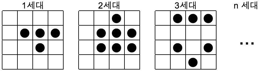 - 산 세포의 이웃 중 산 세포가 2, 3개이면 다음 세대에 산다.