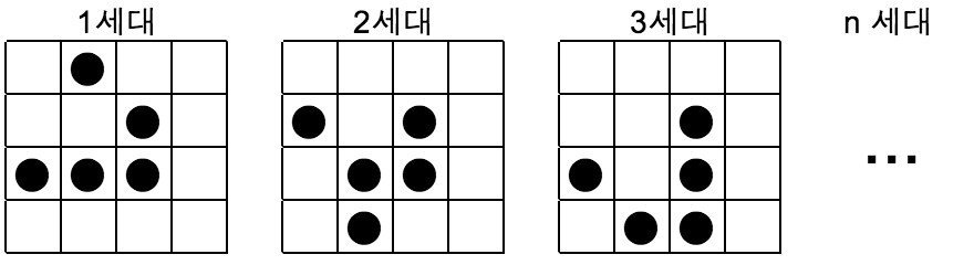 (콘웨이의 생명 게임에서 더 많은 패턴들은 다음 링크를 보라 : 다양한 패턴들)
