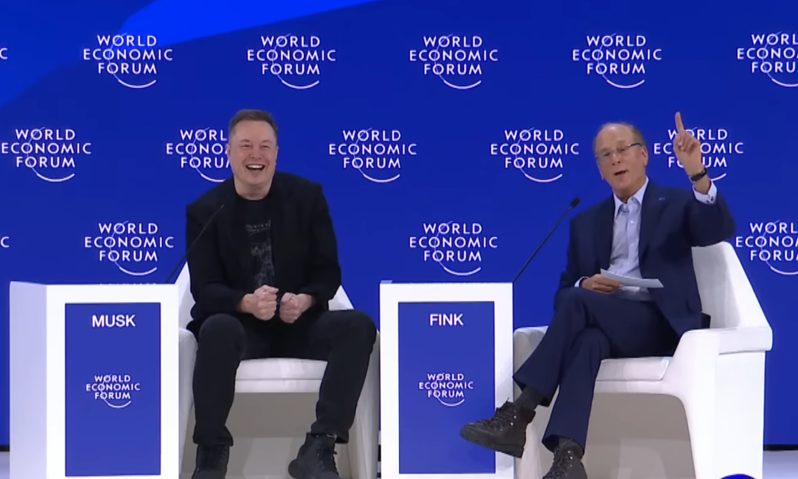 래리 핑크: 좋은 오후입니다, 여러분. 여기 계신 모든 분들을 뵙게 되어 기쁩니다. 다보스에서 정말 놀라운 한 주를 보냈습니다. 모든 분들이 우리가 여기서 대화를 나누고 있다는 것을 보셨기를 바랍니다. 모두가 동의하는 대화도 있고, 우리가 동의하지 않을 수도 있는 대화도 있습니다. 우리가 동의했을 수도 있는 많은 대화가 있지만, 그러한 대화를 통해, 그리고 오늘 일찍 있었던 평화 협정이라는 오늘의 결과를 통해, 세계경제포럼은 이러한 대화를 나누고, 이해하고, 또한 해결책을 찾기 위해 여기 있습니다. 이것은 우리가 누구인지, 우리가 무엇인지의 중요한 요소입니다. 그리고 일론 머스크를 여기에 모시게 되어 기쁩니다. 그는 캘리포니아에서 여러분 모두를 만나기 위해 이곳까지 왔습니다. 일론, 감사합니다. 정말 환영합니다.